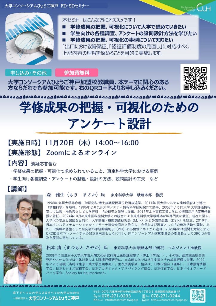 大学コンソーシアムひょうご神戸 FD・SDセミナー                                     「学修成果の把握・可視化のためのアンケート設計」【FD・SD】