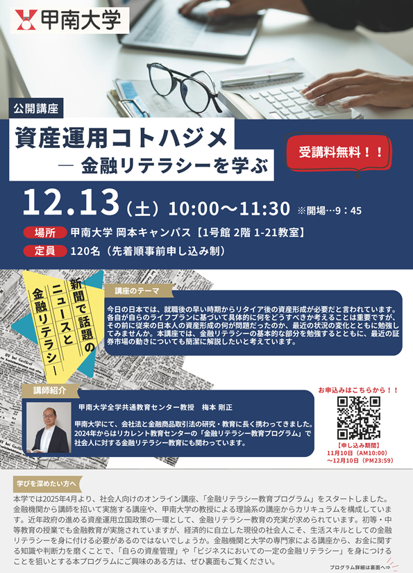 甲南大学 公開講座「資産運用コトハジメ-金融リテラシーを学ぶ」【教育連携】